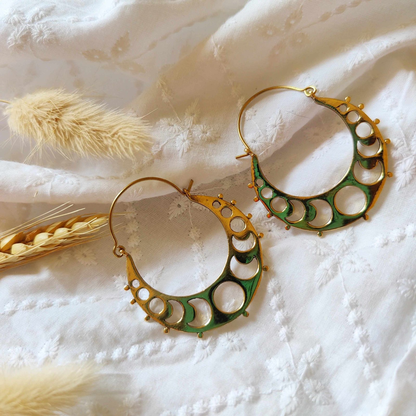 Lunar Elegance: Inspired by the phases of the moon, these earrings feature a series of crescent shapes, capturing the celestial beauty of lunar cycles.