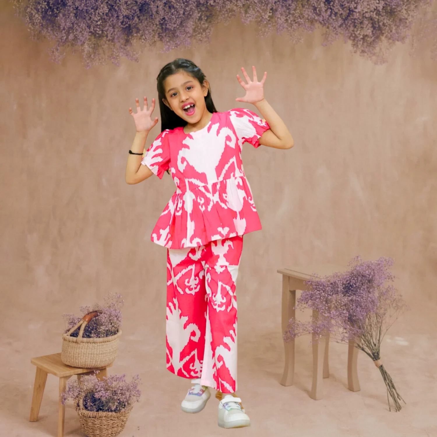 Elevate her wardrobe with the elegant Pink Peplum Top & Pants Dress — a chic ensemble that blends modern style with comfortable wear. The peplum-style top flares gently to accentuate silhouette, paired with matching pants for a coordinated, graceful look. Crafted from soft, breathable cotton, this set ensures she stays stylish and comfortable at parties, family events, or festive occasions. The timeless black hue makes it versatile and easy to accessorize.