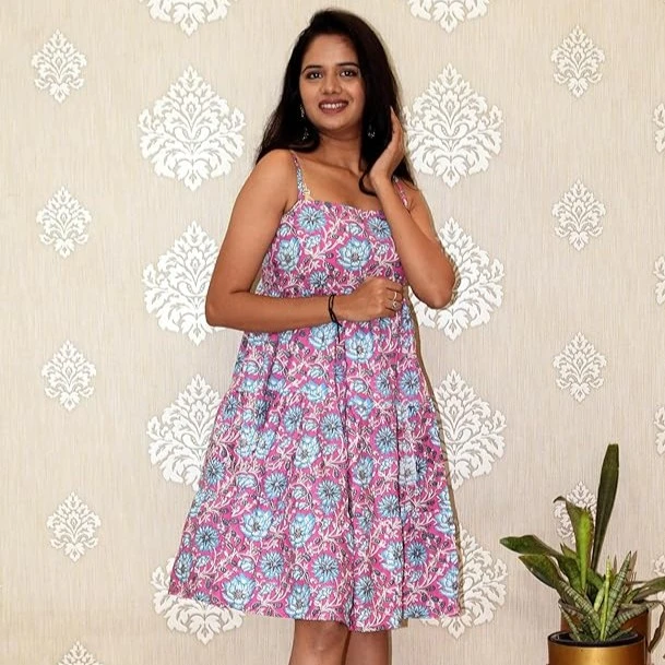 Sleeveless or cap-sleeve styling (subject to variant), allowing easy layering with a shrug or denim jacket.