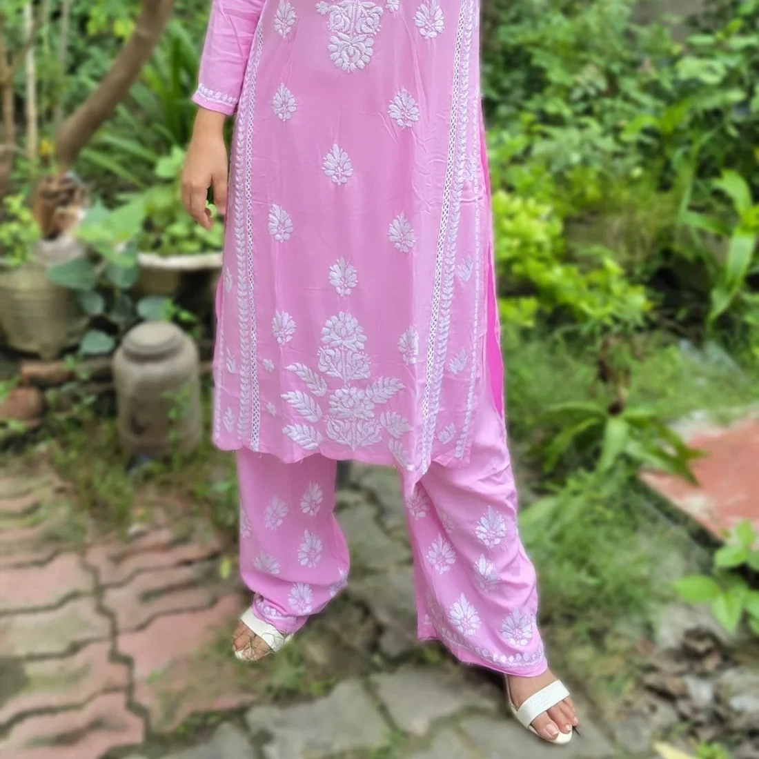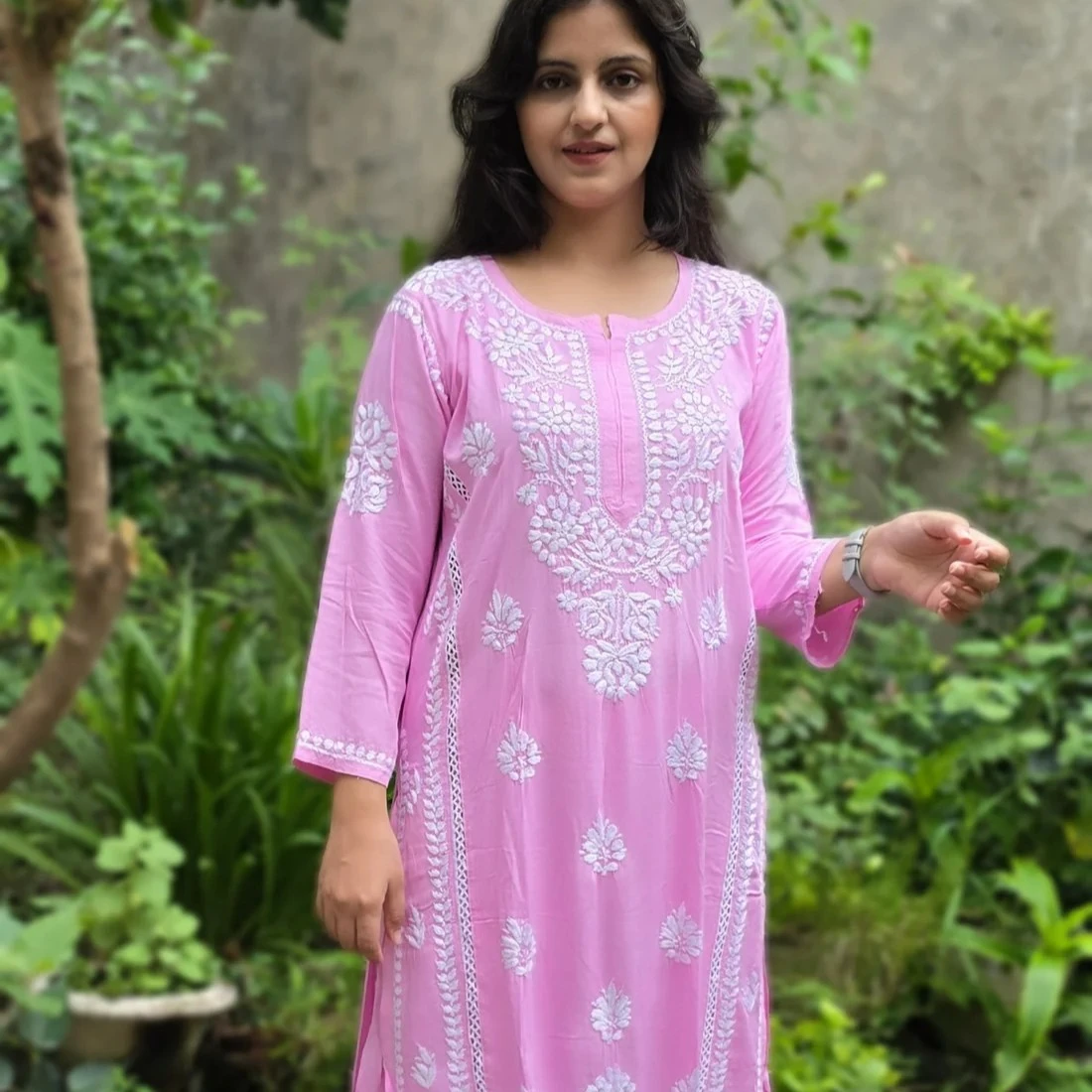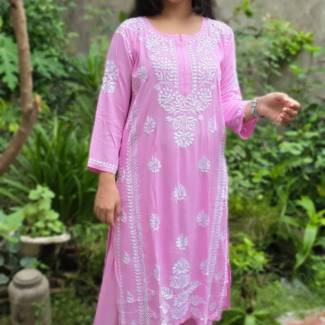 Hand-/Machine (depending on product) chikankari embroidery for classic charm