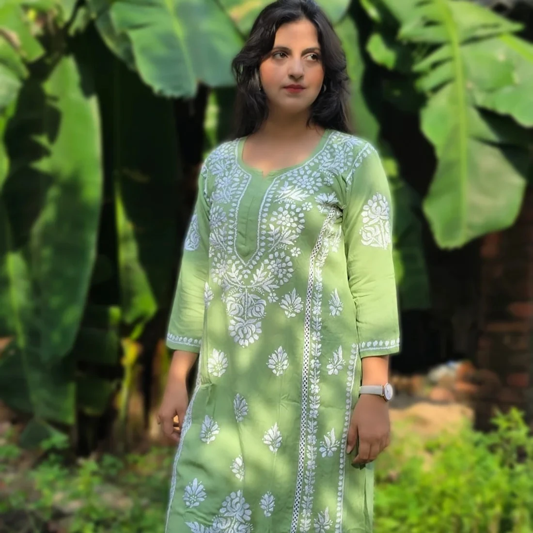 Elevate your ethnic wardrobe with this elegant Rayon Chikankari Kurta-Plazzo Set. The kurta is made from premium rayon that flows beautifully and feels light on the skin, ensuring all-day comfort. Carefully crafted chikankari embroidery adds a refined, artisanal touch without overwhelming the simplicity of the design.