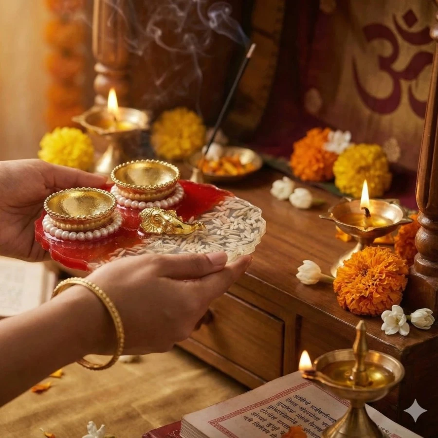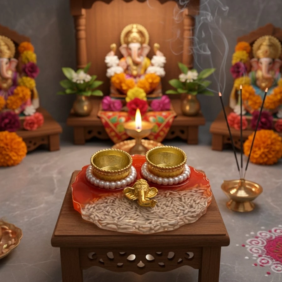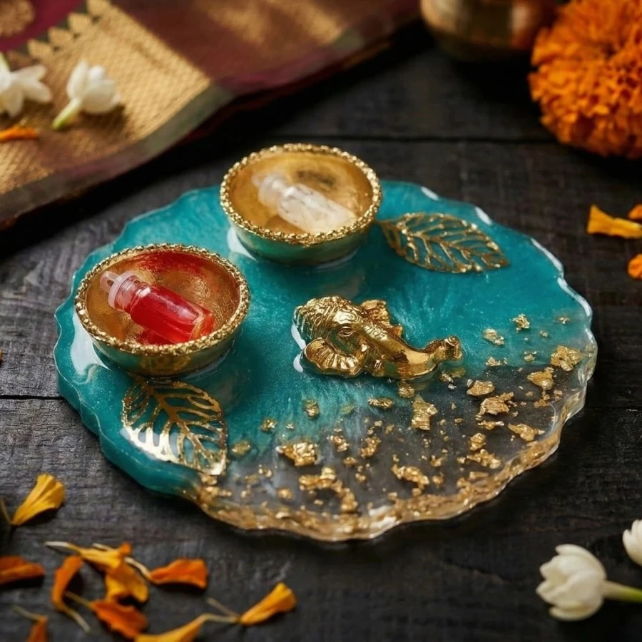 Whether you're gifting or upgrading your spiritual space, this resin pooja plate adds charm, devotion, and beauty to every ceremony.