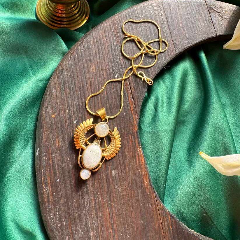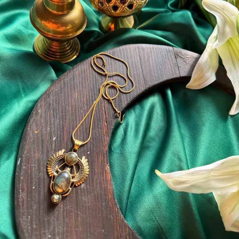Features the Scarab Beetle design, an ancient Egyptian symbol of rebirth, protection, and renewal.