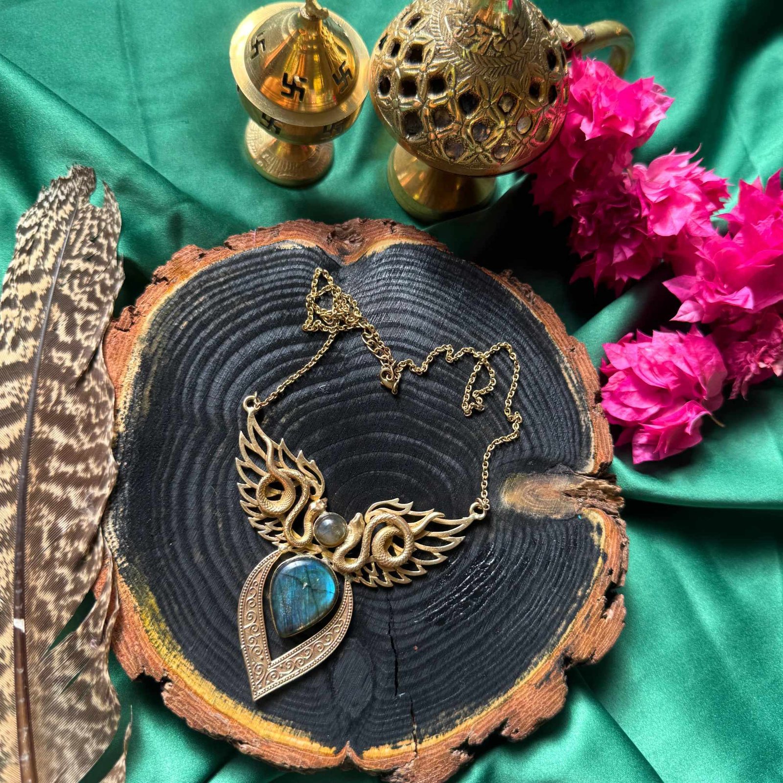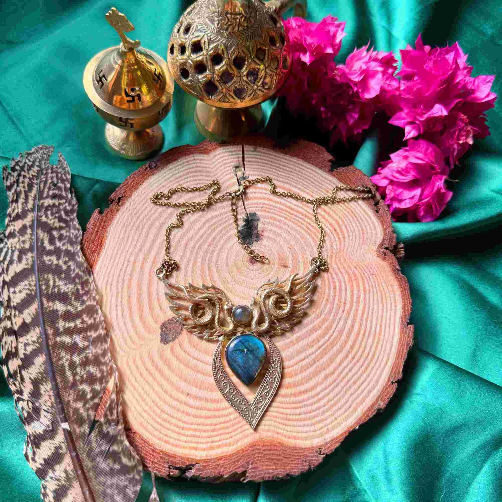 Style: Handcrafted, statement necklace perfect for bold fashion and spiritual expression