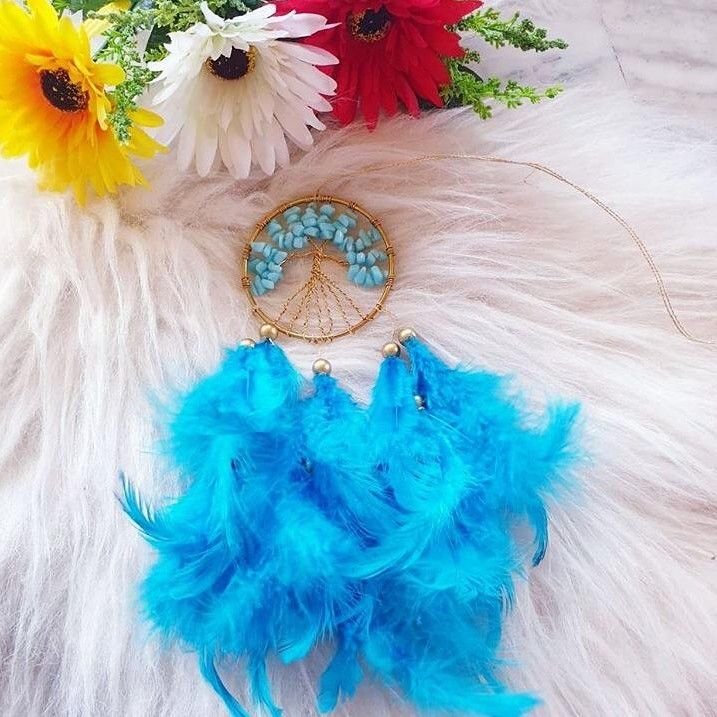 This petite dreamcatcher infuses any vehicle’s rearview mirror or small space with delicate, spiritual elegance. Its sky-blue hues are bright, enchanting, and effortlessly uplifting.
