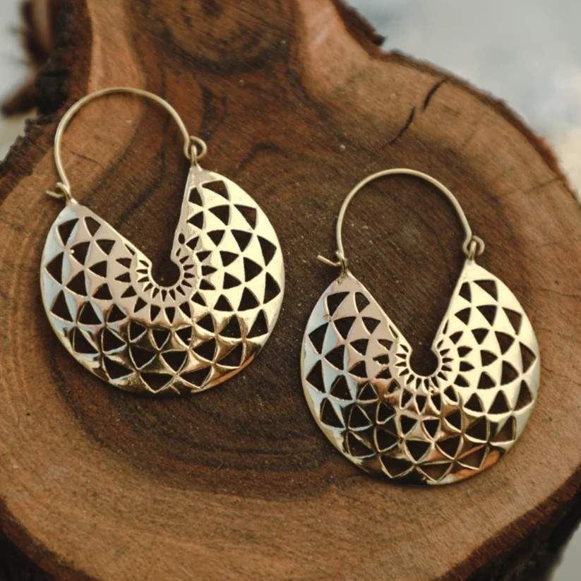 Celestial Design: These earrings feature intricate mandala hoops, reflecting inner balance and serenity.