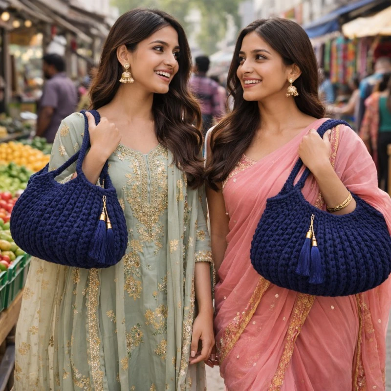 Lightweight yet spacious, this knitted handbag can carry your essentials with easeβideal for shopping, outings, parties, and daily use. Every piece is handcrafted by skilled artisans, making it special, stylish, and truly sustainable.
