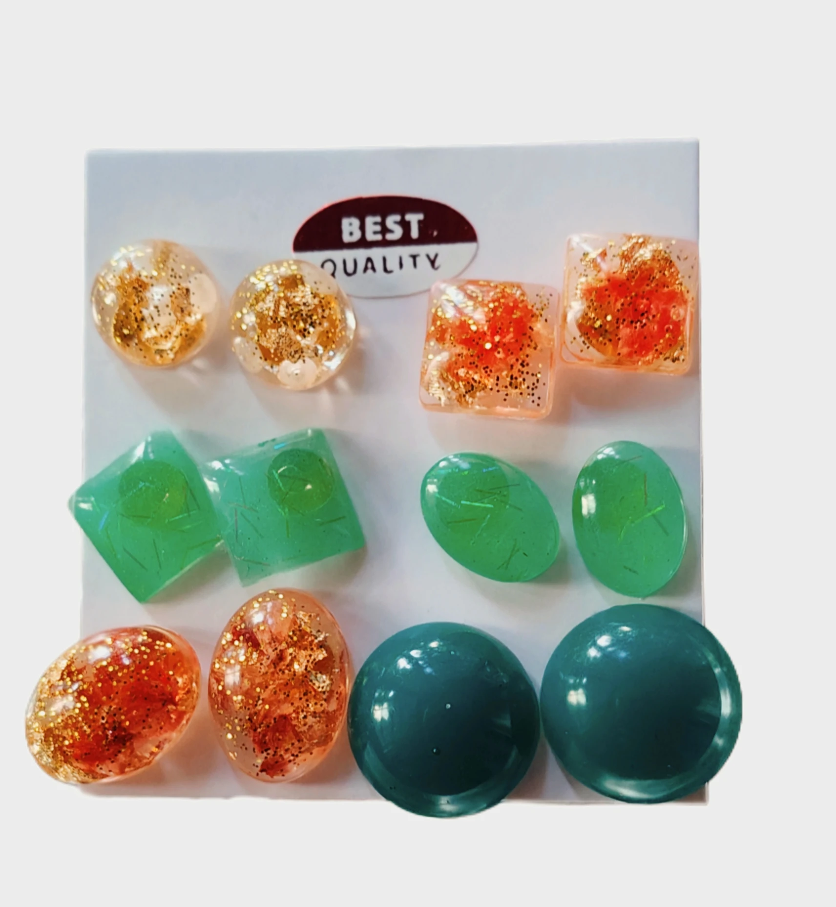 Upgrade your jewellery collection with this Stylish Resin Stud Earrings Combo Set, featuring 6 pairs of trendy multicolor studs in different shapes and finishes. Designed to match both ethnic and western outfits, these studs are perfect for daily wear, office, casual outings, parties, and gifting.