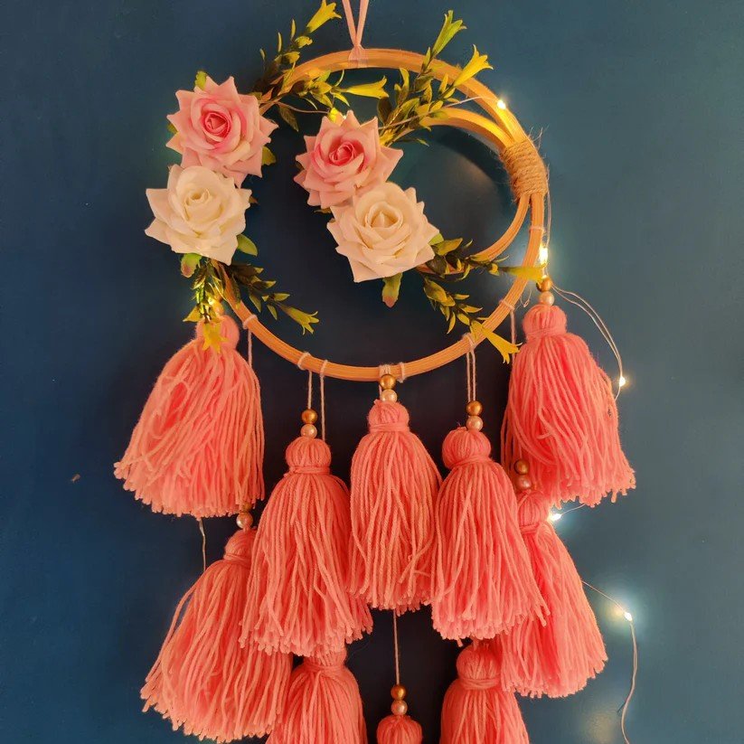 Bring a soft, charming touch to any space with the Superbloom Babypink Dreamcatcher. Crafted with wooden rings and delicate threads, this dreamy pink wall hanging adds a pop of color and a soothing boho vibe to your room. Perfect as a decorative centerpiece or a thoughtful gift for friends and family.