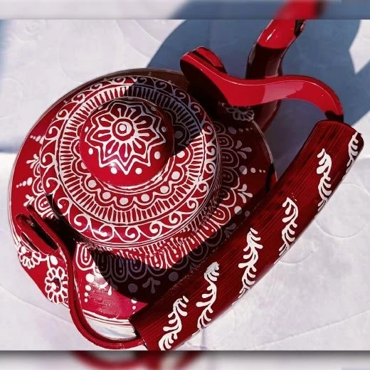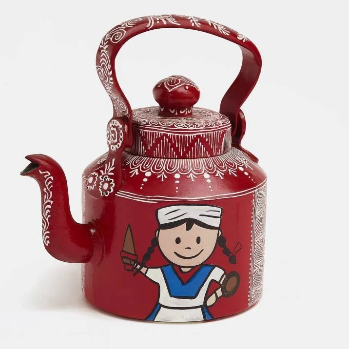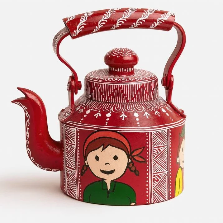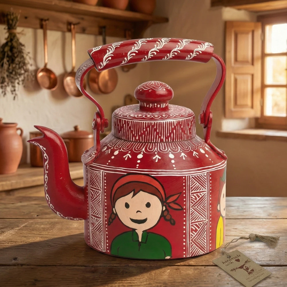 Experience the charm of traditional Uttarakhand Aipan Art with this beautifully hand-painted Decorative Tea Kettle. Each kettle is meticulously designed with fine patterns, folk-style motifs and bright red color, making it a standout piece for any décor setup.
