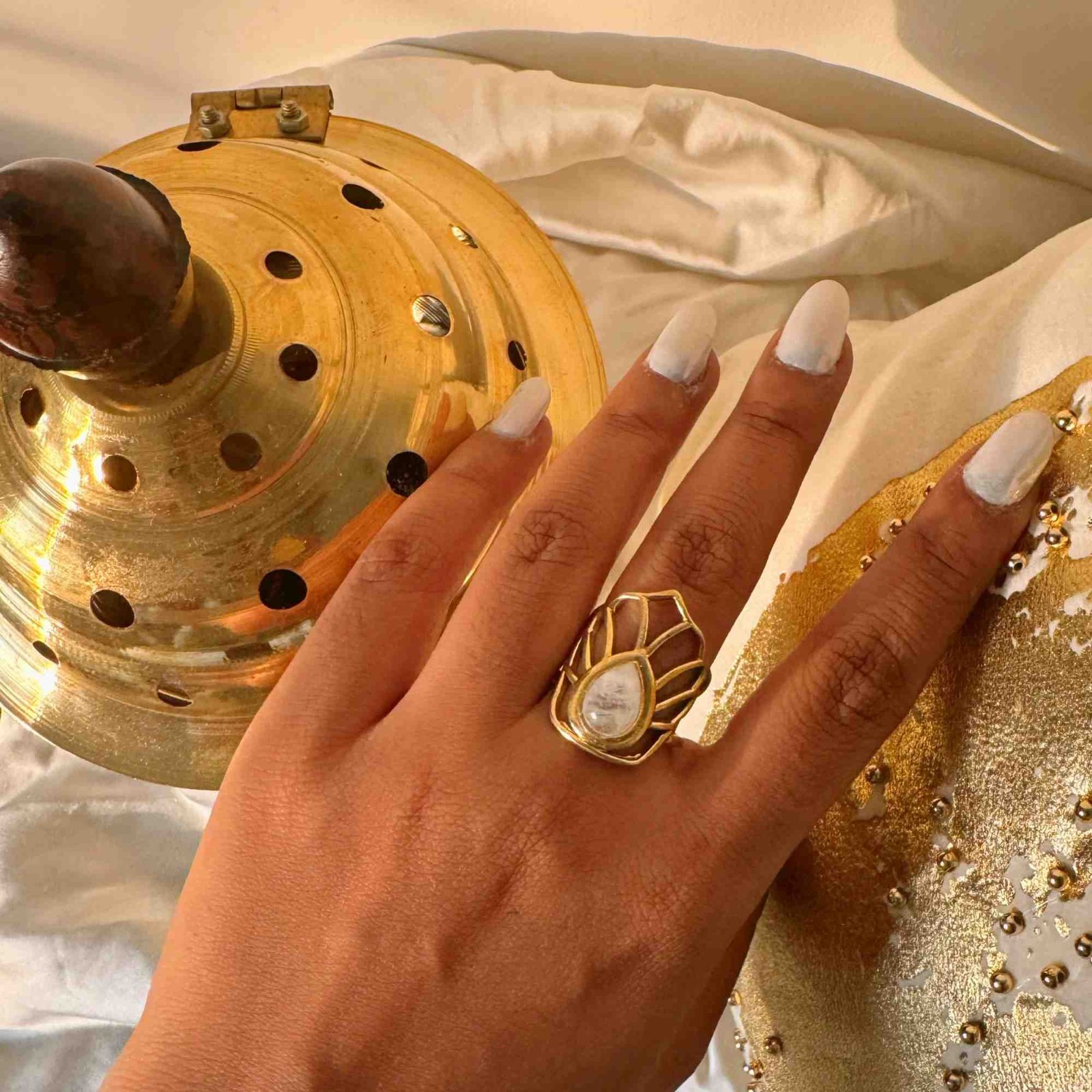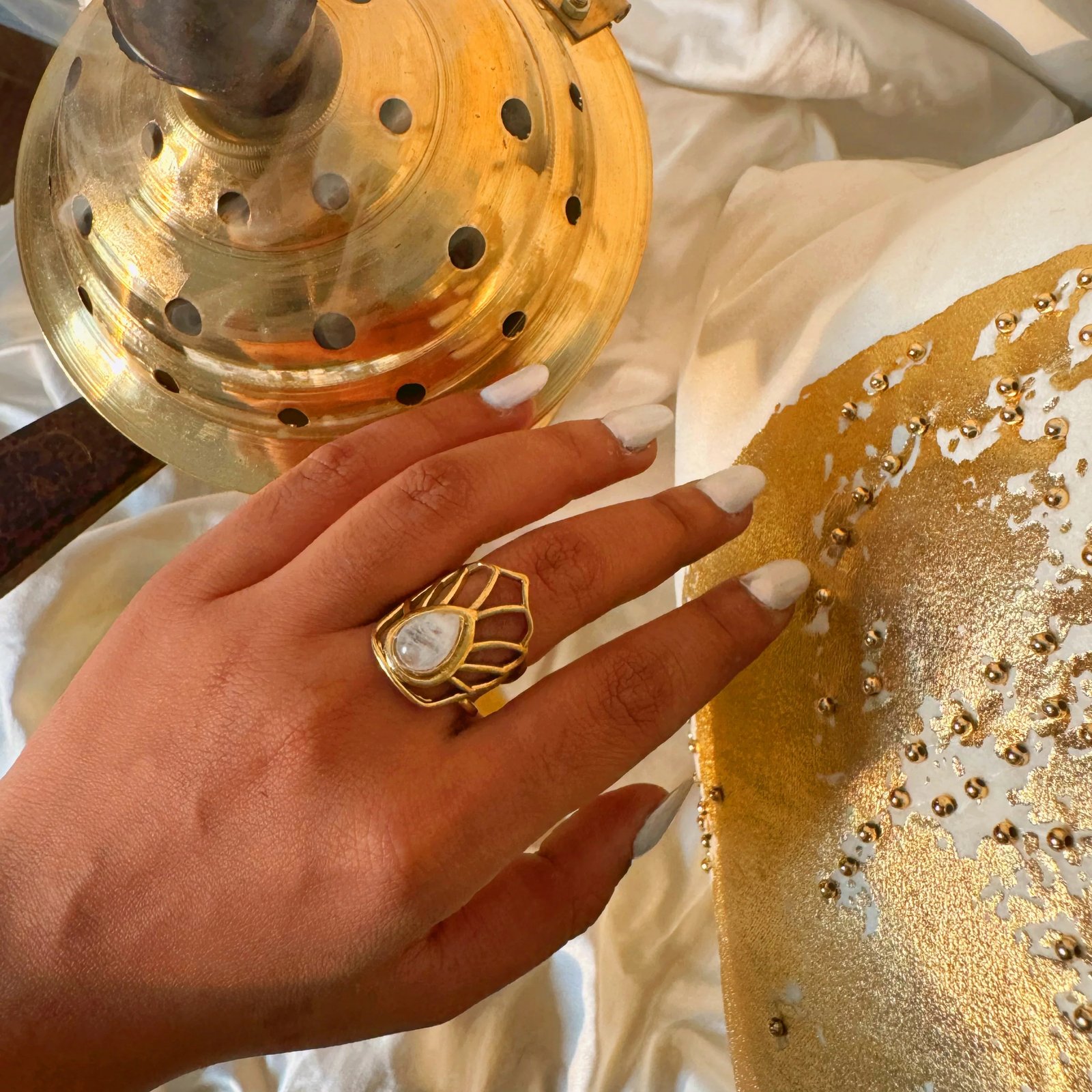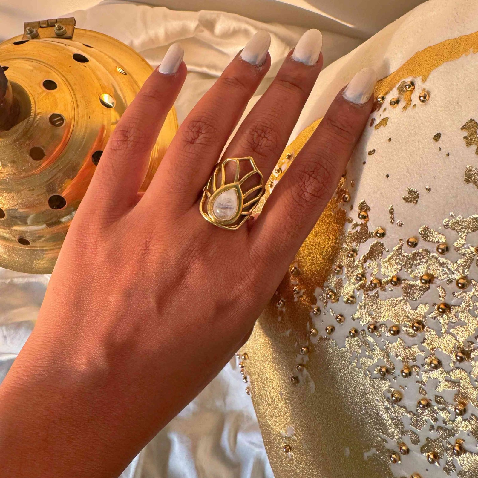 ✔ Ethereal Moonstone set in radiant brass for a mystical, enchanting look