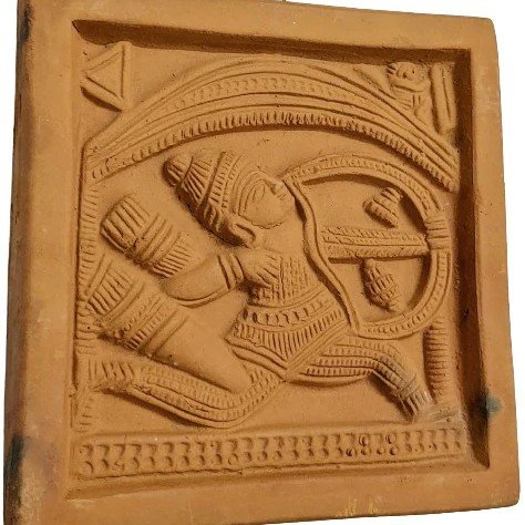Celebrate the valor and artistry of Arjun with this handcrafted terracotta wall hanging showpiece. Meticulously crafted by skilled artisans, this piece captures the essence of Arjun's heroic stance, showcasing intricate detailing that reflects traditional Indian craftsmanship. The contrasting colors used in the design enhance its visual appeal, making it a classic addition to any home or office décor. Perfect for gifting on special occasions such as birthdays, anniversaries, or housewarmings.