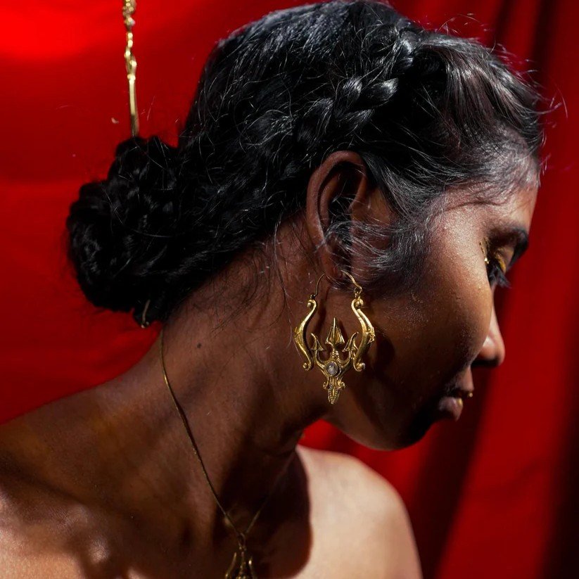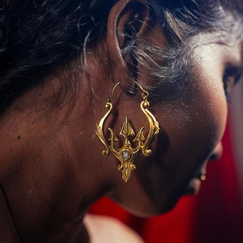 Spiritual Design: The Trident Moonstone Earrings feature a trident motif, symbolizing strength and divine protection, complemented by moonstone accents believed to enhance intuition and emotional balance.
