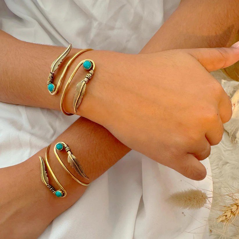 ✔ Elegant leaf-inspired pattern with turquoise accents