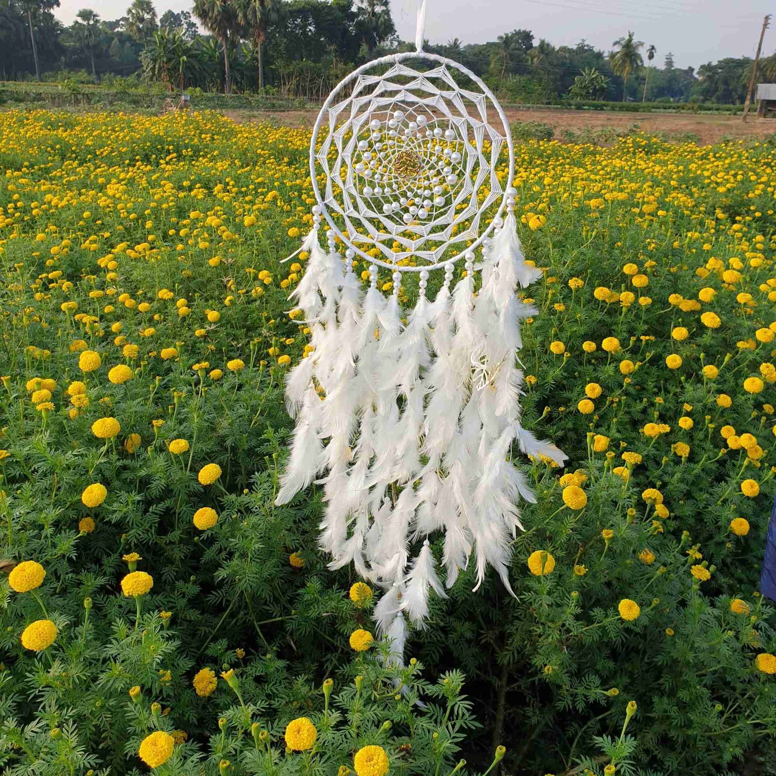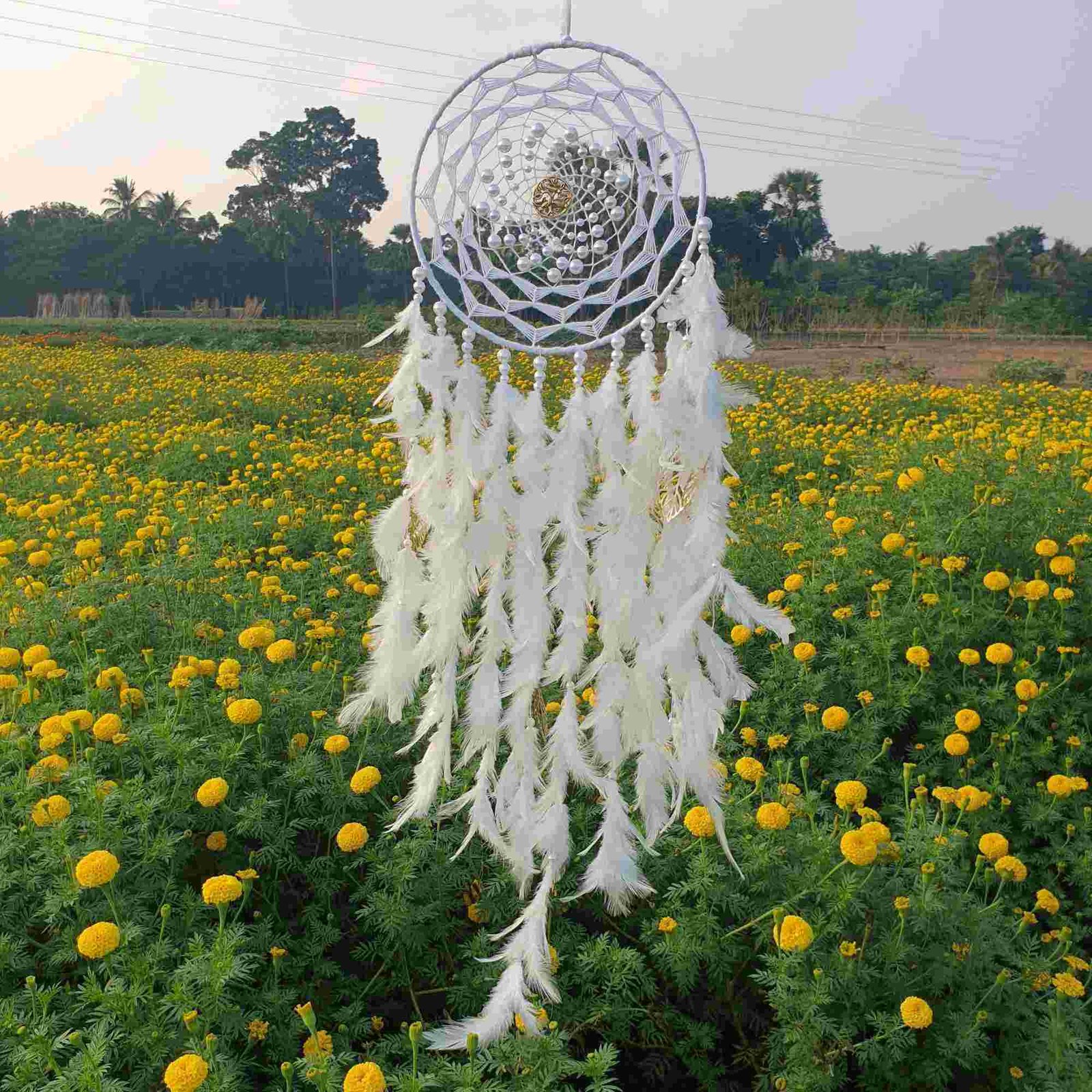 Elevate your space with the serene elegance of the White Love Dreamcatcher. Handcrafted using soft wool, delicate feathers, and sturdy thread on a steel ring, this dreamcatcher brings a calming boho charm to any room. Its pristine white palette adds a touch of purity and sophistication, making it a perfect centerpiece for bedrooms, living areas, or meditation spaces.