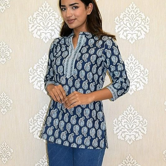 Add a splash of cool elegance to your wardrobe with this Women’s Indigo V-Neck Short Cotton Kurti. Crafted from soft, breathable 100% cotton fabric, this piece offers all-day comfort with a flattering V-neckline and a short length that blends modern style with ethnic charm.