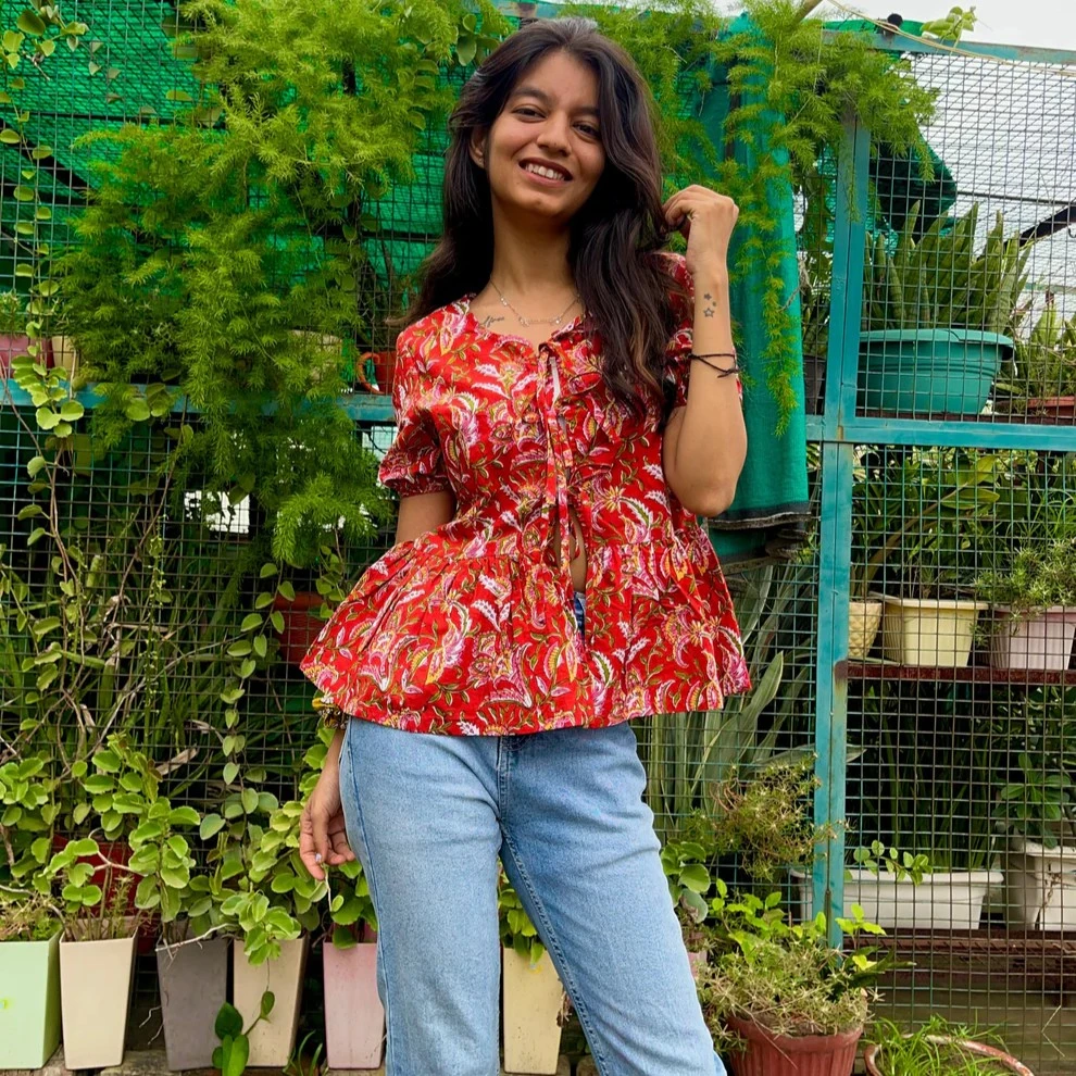 The vibrant red and green dual-tone colour makes it ideal for casual outings, brunch, or everyday wear. Lightweight and easy to maintain, this top pairs effortlessly with jeans, shorts, or slim trousers.