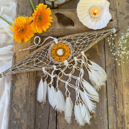 Intricate Craftsmanship – Thoughtfully crafted using macramé knots inside a sturdy steel hoop, accented with beads and shell tassels to deliver depth and texture.